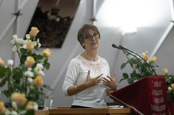 A délelőtti program folytatásaként meghallgattuk dr. Kis Klára egyetemi docens előadását „Bezzeg az én időmben” címmel. Az előadásban a generációk együttélésének kérdéseit járta körül. Hallhattuk, hogy „a generációkban láncra fűzve létezünk nemzedékről nemzedékre, ez erőt ad és alázatra is tanít. Az aranyfonal Isten változtathatatlan hűsége, ami egyben tartja ezt a láncot" – fogalmazott a Debreceni Református Hittudományi Egyetem tanszékvezető egyetemi docense. Hozzátette: az Ószövetségben a törvény átadásán a következő generációk élete múlott. "Ma olyan, mintha ez az átadás nehezebben menne. A generációk kritikusan figyelik egymást és vélekednek egymásról. Ha kellőképpen el tudunk távolodni a kérdéstől, akkor már nem problémaként tekintünk a generációk különbségeire, hanem olyan adottságként, melyhez alkalmazkodni kell. Sokszor elítéljük a fiatalabb generációkat, de meg kell hallanunk őket, hiszen rengeteg nehézséggel néznek szembe, melyeket az előző generációk hagytak rájuk" – emelte ki dr. Kis Klára. Példaként említette az álságos, hazug, kaotikus környezetet, a tények hiányát, a túl sok választási lehetőséget, a választási kényszert, az online tér túlzott hatásait, az agresszív világot, a tönkretett környezetet és a reménytelen jövőt.