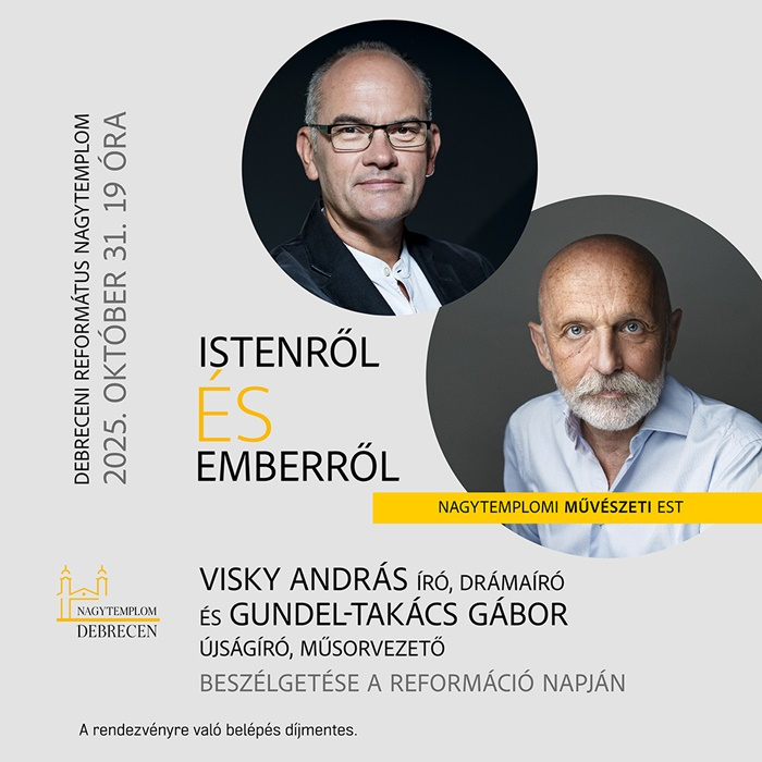 Beszterczey András felhívta a figyelmet az istentiszteletet követő programra is: 19 órától Visky András író és Gundel-Takács Gábor újságíró-műsorvezető beszélget a Nagytemplomban, a cím: Istenről és emberről. A rendezvényen a részvétel ingyenes.