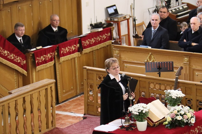 Közreműködtek a pedagóguskórus tagjai, akik Nagy-Fekete Zsuzsanna vezetésével a „Hűséged végtelen…” és a „Rejts most el…” kezdetű énekekkel szolgáltak az ünnepi Istentiszteleten.