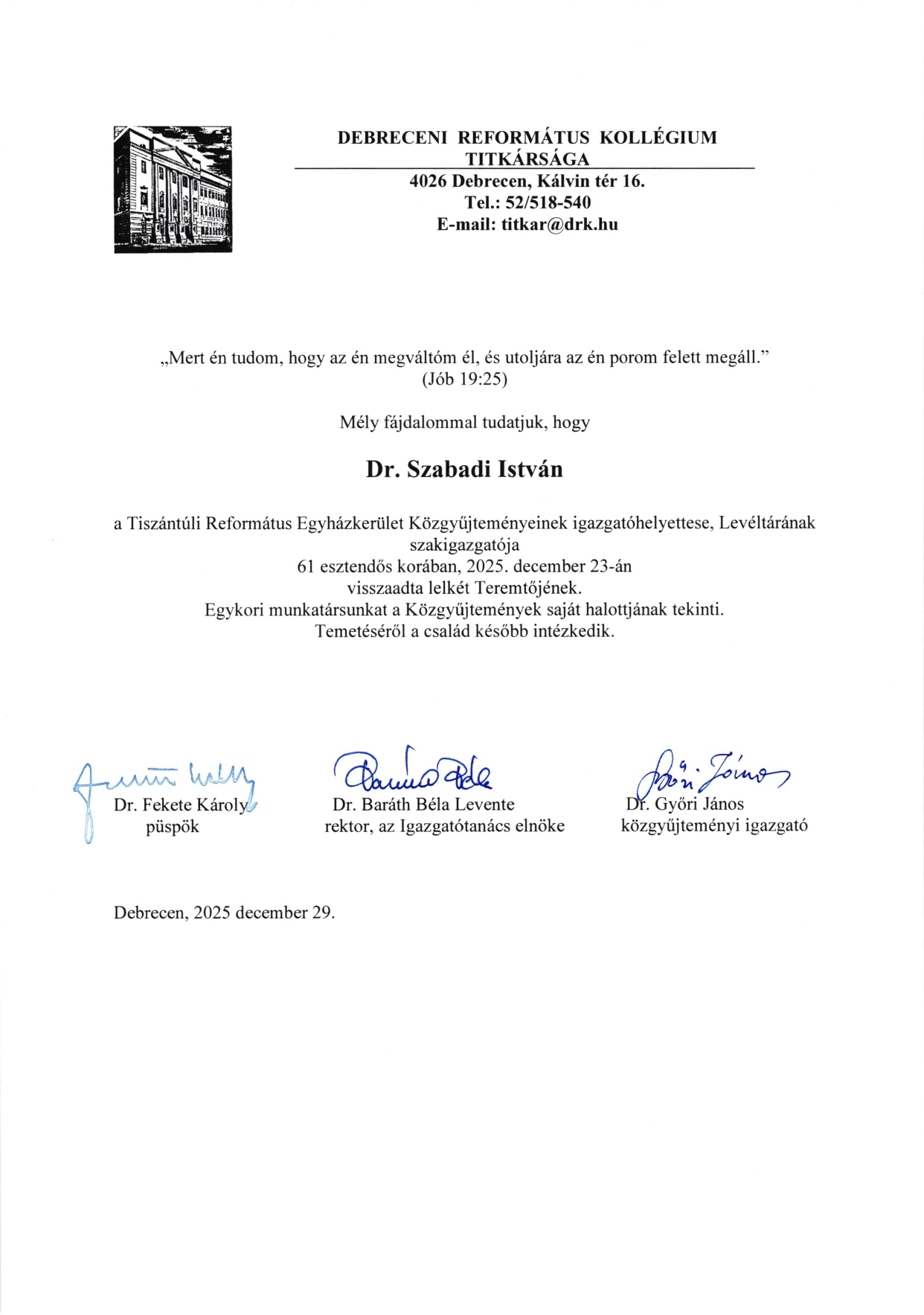 FőoldalKerületiElhunyt a TTRE Levéltárának szakigazgatója Elhunyt a TTRE Levéltárának szakigazgatója Dr. Szabadi István 61 évet élt.