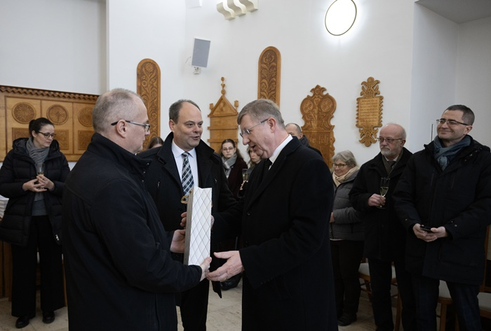 Az alkalom keretein belül Fekete Károlyt Oláh István, a Debrecen-Nagytemplomi Református Egyházközség elnök-lelkipásztora és Ember Sándor, a gyülekezet főgondnoka köszöntötte, majd megajándékozták a Nagytemplom régi orgonájának sípjával.
