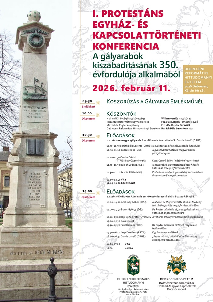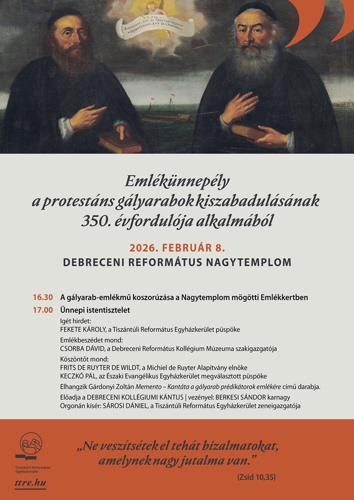Az 1671-1681 közötti ellenreformáció idején több száz protestáns lelkészt és tanítót állítottak a pozsonyi bíróság elé a katolikus egyház megsértése és felségsértés vádjával. A hitüket vállaló mártírokat gályarabságra ítélték. Évekkel később, 1676. február 11-12-én a holland Michiel de Ruyter admirális szabadította ki az életben maradt hithősöket. A 350. évfordulóhoz kapcsolódva két esemény emlékezik meg róluk Debrecenben.