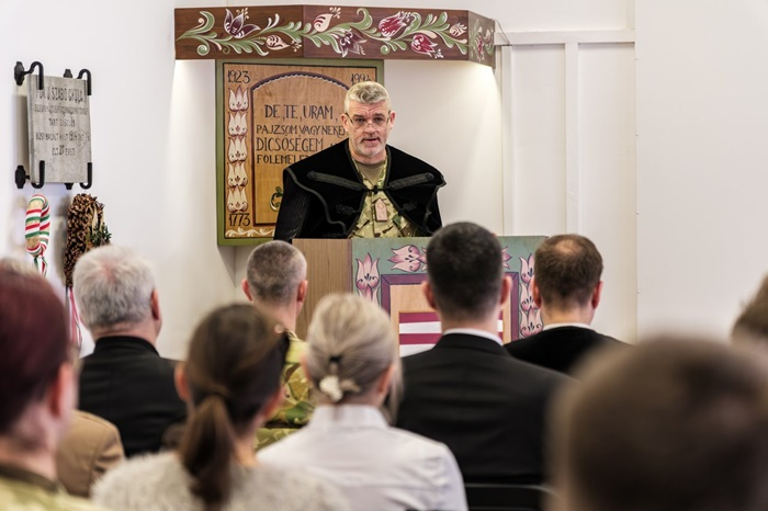 A tábori püspök az erő és bátorság bibliai jelentését részletesen bontotta ki. Nem sikerességről vagy dominanciáról beszélt, hanem engedelmességről és felelősségről. – Az igazi erő nem az agresszióban, nem a hangerőben, nem a dominanciában mutatkozik meg. Az igazi erő az, amikor valaki nem fut el a felelősség elől. A bátorság nem a félelem hiánya, hanem az, amikor valaki fél, de mégis engedelmes marad, mert önmagán túlmutató bizodalma van. Ez különösen fontos mind az egyházi, mind a katonai vezetésben – hívta fel a figyelmet a tábori püspök.