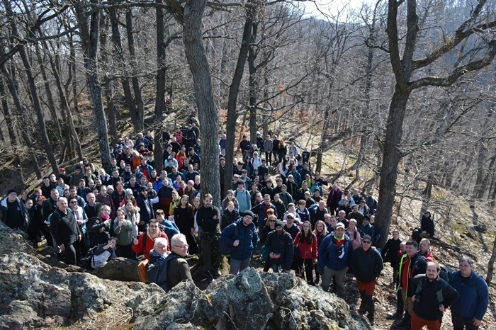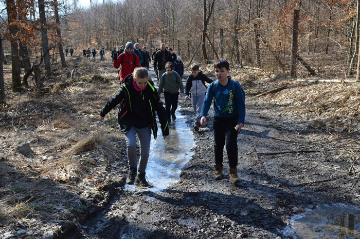 A közel 180 fős csapat kora reggel indult útnak Újhutáról, és a Kerek-kő, valamint a Zsidó-rét érintésével teljesítettük a csaknem 17 kilométeres távot. Az út helyenként kissé saras volt, de a ragyogó napsütésben különösen szép arcát mutatta a táj. Igazi áldás volt együtt haladni, beszélgetni, és megélni a közösség örömét a Jóisten jelenlétében. Fiatalok és a hozzánk csatlakozó „örökifjak”, együtt vágtunk neki lelkesen a túrának.