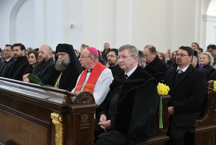 Kocsis Fülöp, a Hajdúdorogi Főegyházmegye érsek-metropolitája imáját követően Palánki Ferencnek, a Debrecen-Nyíregyházi Egyházmegye megyéspüspökének beszéde hangzott el. A nagyhétről Márton Áron székely püspök elmélkedését idézte, aki azt mondta, Jézus akkor is eljött volna erre a világra, ha nem történt volna meg az első bűn, hogy az ember megszokja Isten közelségét. Isten egészen közel akar jönni hozzánk, csak még nem vesszük észre. Azt gondoljuk, amikor hordozzuk keresztjeinket, Isten elhagyott bennünket. Mikor végigjárjuk a keresztutat, rádöbbenhetünk arra, hogy Isten szeret bennünket, hogy Jézus nem a semmiből látott meg bennünket, hanem a szeretetével. Vállalta értünk az áldozatot, s meghívott bennünket, hogy vele együtt járjunk mi is személyes életutunkat, mely sokszor keresztútnak tűnik, de tudnunk kell azt, hogy üdvösségünk történik. Palánki Ferenc Zelk Zoltán költő gondolatait is felidézte: Barátaim azt hiszik, fekszem, nem tudják, hogy megadó szívvel járni tanulok Isten oldalán. A püspök szavai szerint most, amikor végigjárjuk lélekben Jézus keresztútját, járjunk Isten oldalán. Gondoljunk a sebeinkre, de gondoljuk a szeretetre, és gondoljunk azokra is, akik sokkal nagyobb terheket hordoznak. Palánki Ferenc arról is szót ejtett, hogy XIV. Leó pápa azt mondta a mai virágvasárnapi szentmise prédikációjában, hogy amikor ránézünk a megfeszített Krisztusra, eszünkbe kell jussanak mindazok, akik most szenvednek a világban, a háború, a gőg, a gonoszság miatt. – Imádkozzunk ebben a mostani együttlétünkben, közösségünkben, a békéért, a háborúk megszüntetéséért, azért, hogy az emberek rádöbbenjenek arra, hogy csak együtt üdvözülhetünk – kérte az egybegyűlteket Palánki Ferenc.