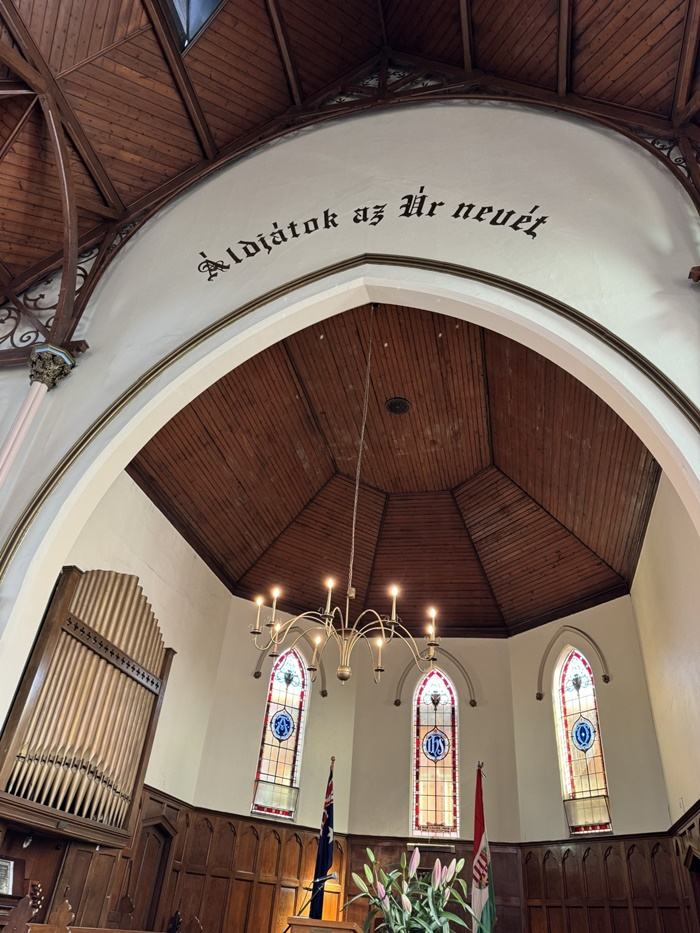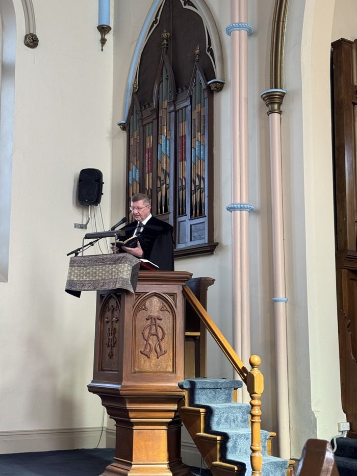A helyi lelkipásztor üdvözlő szavai után Fekete Károly is köszöntötte a népes gyülekezetet, és átadta Nagy Sándor Csongor lelkipásztornak és Makkai Márta gondnok asszonynak azt az egységfát ábrázoló ezüst kitűzőt, amelyet a 2025-ben tartott Magyar Református Egységnapra érkezők kaptak ajándékba, hiszen a tavalyi Generális Konvent plenáris ülésén csatlakoztak a Magyar Református Egyház szervezetéhez az ausztráliai magyar reformátusok.