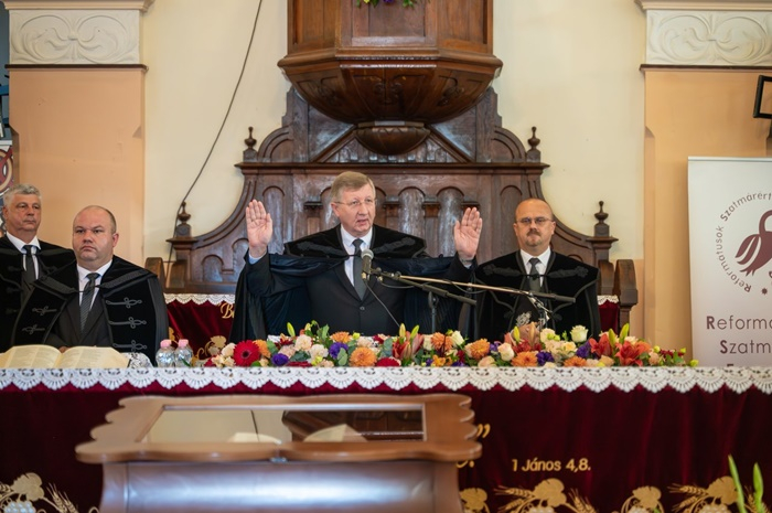 Végül Szalay Kont, a Szatmári Református Egyházmegye esperese a történelmi gyökereket idézte fel, rámutatva az 1545-ös Erdődön tartott zsinatra, amely hűségre és az egység megőrzésére inti napjaink reformátusait. – Hála legyen a mindenható Istennek. Ezek a dolgok köteleznek bennünket a hűségre, az egységre, az összetartozásra, köteleznek bennünket arra, hogy ellene mondjunk minden szétszakító törekvésnek – hangsúlyozta az esperes.