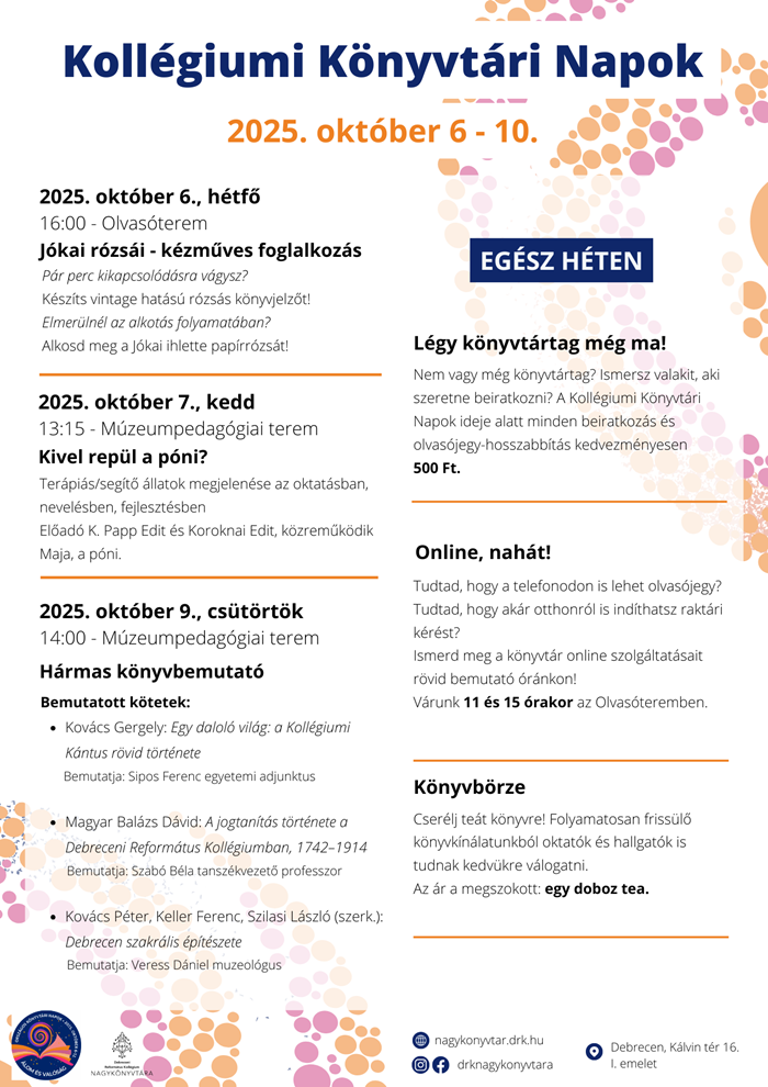 Könyvbörze: a folyamatosan frissülő könyvkínálatból oktatók és hallgatók is tudnak kedvükre válogatni. Az ár a korábbi években megszokott módon egy doboz tea.