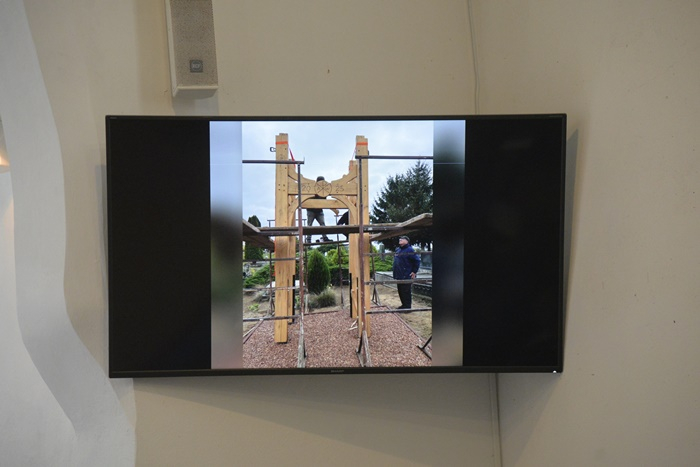 A Lélekharang-harangláb Bodrog László fafaragó munkája, aki az alkotásban a templom gótikus ablakait és ajtókereteit idézte meg: