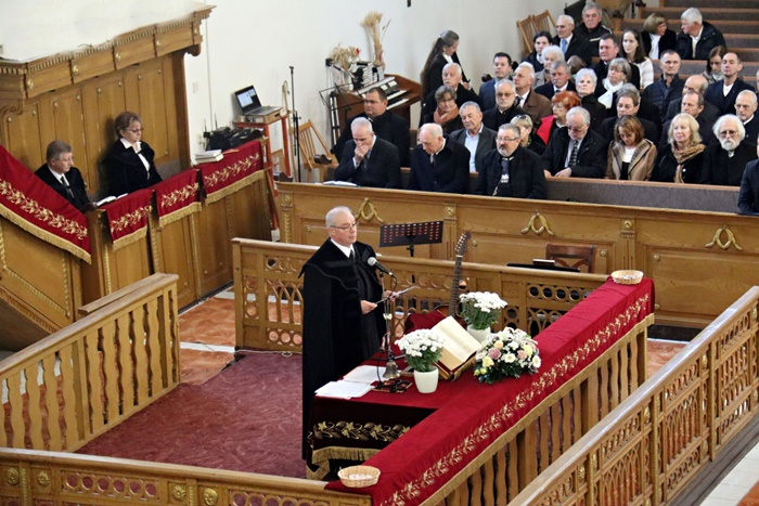A beszámoló kiemeli, hogy Pella Pál, az intézményt fenntartó Püspökladányi Református Egyházközség lelkipásztora köszöntötte az egybegyűlteket, az igei szolgálatot pedig Fekete Károly, a Tiszántúli Református Egyházkerület püspöke végezte. Köszöntő beszédet mondott Janó Márk államtitkár, Varga Zoltán alpolgármester, majd Győri János, a Tiszántúli Református Egyházkerület Közgyűjteményeinek igazgatója méltatta Erőss Lajos életét és szolgálatát, melyet Püspökladányért, a gyülekezetért, az egyházkerületért végzett.