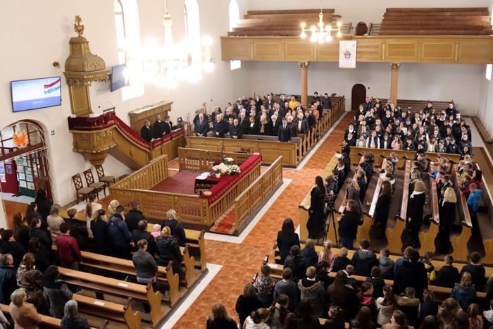 Közreműködtek a pedagóguskórus tagjai, akik Nagy-Fekete Zsuzsanna vezetésével a „Hűséged végtelen…” és a „Rejts most el…” kezdetű énekekkel szolgáltak az ünnepi Istentiszteleten.
