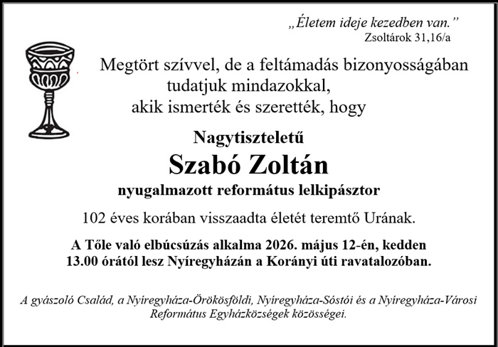 Elhunyt Szabó Zoltán nyugalmazott lelkipásztor